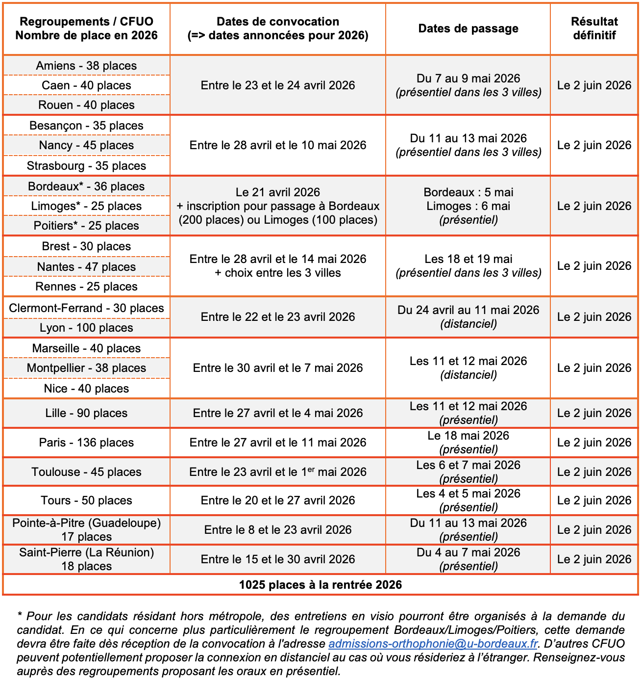 En 2026, le numerus clausus reste drastique. Seulement 1025 places sont réparties sur les 23 CFUO. Ces centres sont organisés en 12 « regroupements » :